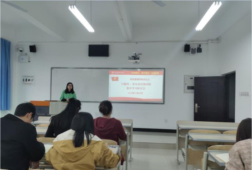 11月5日,财经管理学院党总支在2406教室围绕“夯实基层强功能”这一学习专题开展了集中学习研讨,党总支副书记阳春艳主持学习研讨会议,党总支委员、副科级及以上干部、下设党支部书记、专职组织员参加了会议。