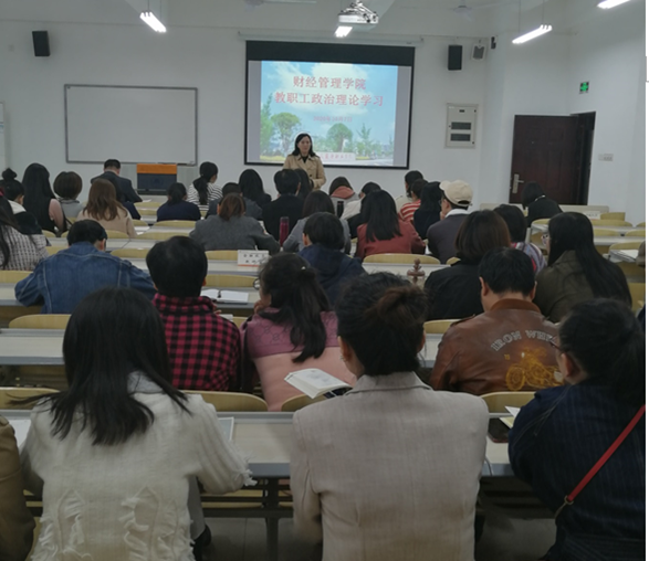2020年10月7日,财经管理学院全体教职工在2403教室参加10月政治理论集中学习活动。
