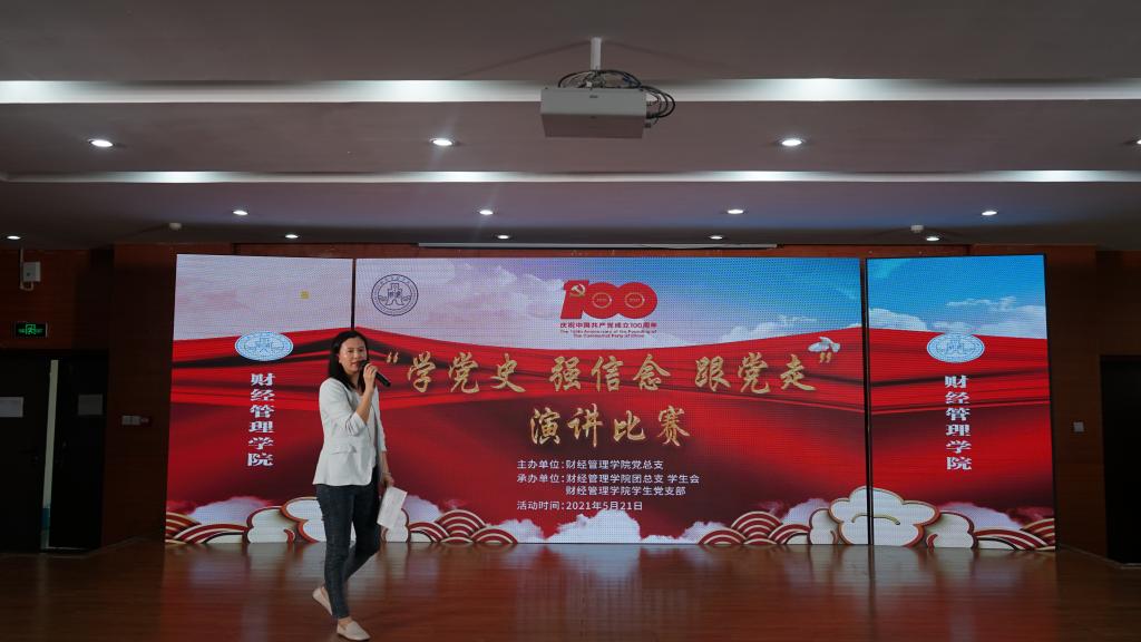 2021年5月21日,财经管理学院在学生活动中心开展了“学党史 强信念 跟党走”系列活动之主题演讲比赛,财经管理学院党总支书记黄琳娜、副书记阳春艳以及学院下设各党支部书记,全体专兼职辅导员出席本次决赛。