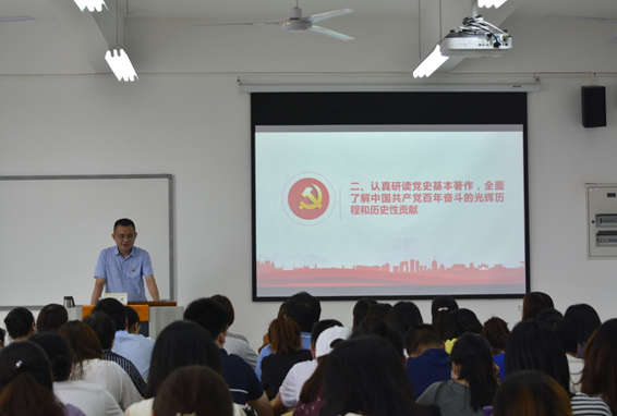根据学校开展党史学习教育宣讲的要求,2021年6月2日,学校党史学习教育宣讲团副团长贾小波莅临财经管理学院,为学院全体教职工及学生代表共计100余人作了一场生动的党史宣讲报告,党总支书记黄琳娜主持报告会。