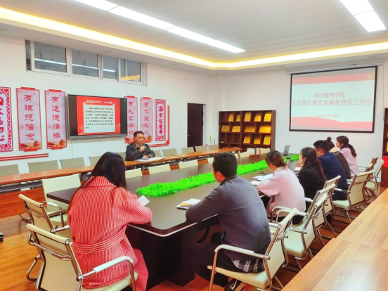 3月28日下午,财经管理学院在2401党员活动室召开党建工作会,党总支委员、班子成员、专职组织员、下设党支部书记参加会议,会议由党总支书记、院长苏启立主持。