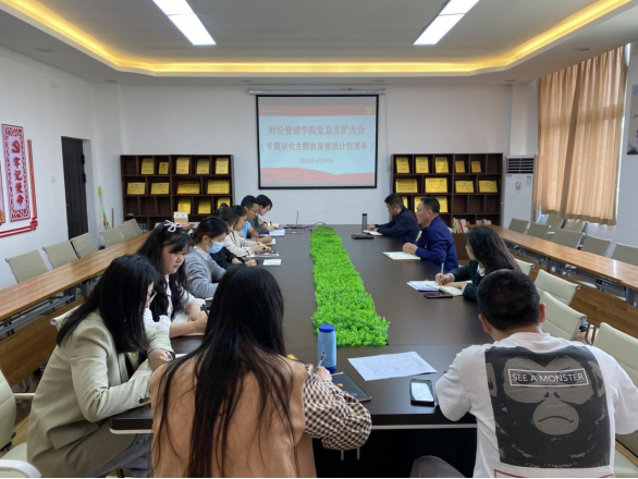 为深入推进学习贯彻习近平新时代中国特色社会主义思想主题教育,4月26日中午,财经管理学院党总支在2401党建活动室召开党总支扩大会专题研究主题教育推进计划清单,会议由党总支书记、院长苏启立主持,党总支班子、专职组织员、下设党支部委员参加会议。