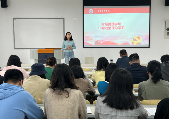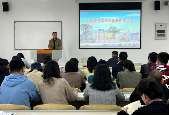 10月11日,学院组织全体教职工在2403教室开展10月全体教职工大会暨政治理论学习活动,会议由党总支副书记阳春艳主持。