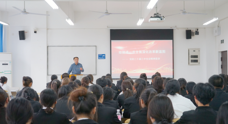 党总支书记、院长苏书记为青马班学员开讲第一课,开展党的二十届三中全会精神宣讲。宣讲紧紧围绕党的二十届三中全会的重大意义和主题展开,要求当代青年深刻理解进一步全面深化改革的时代背景、历史方位和使命任务,深刻领会进一步全面深化改革的指导思想、总目标和重大原则,紧密地团结在以习近平同志为核心的党中央周围,坚定不移听党话,感党恩,跟党走。希望全体青马班学员明确目标、找准定位,努力夯实专业基础,积极投身社会实践,不断提升职业素养,砥砺前行增强文化自信,团结奋斗汇聚青春力量,努力成长为德智体美劳全面发展的社会主义合格建设者和接班人。