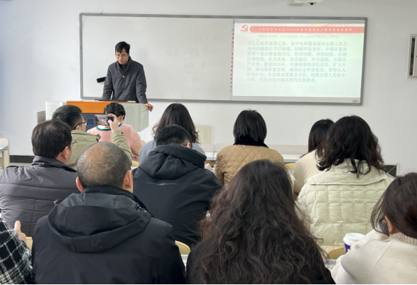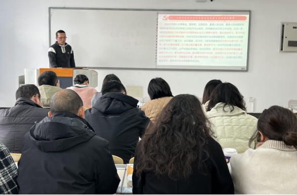 2月26日,学院全体教职工在2408教室开展政治理论学习。