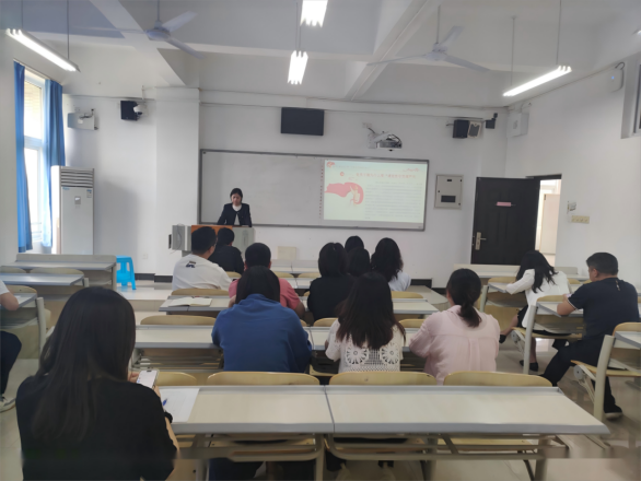5月14日,教师党支部书记姚睿娟在2421教室以“做学纪知纪明纪守纪的模范”为主题讲授党课,支部全体党员参加。