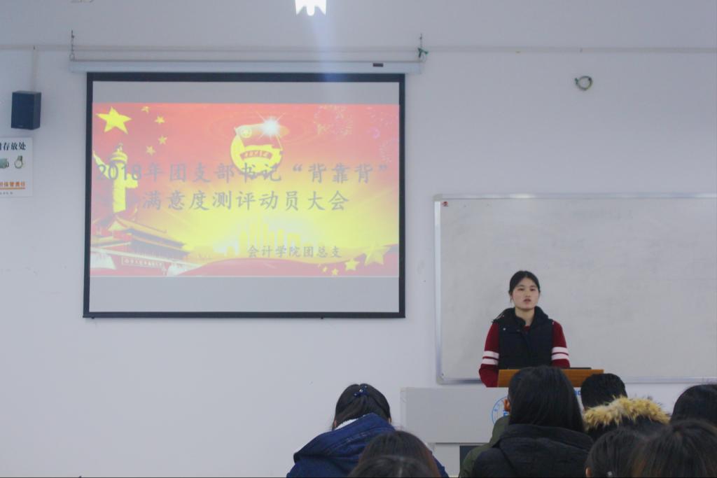为落实全面从严治党、从严治团要求,进一步加强团支部书记队伍建设,深化“团支部书记工作满不满意团员说了算”评价机制,2018年1月21日开始,会计学院2016级、2017级所有班级陆续开展了团支部书记“背靠背”满意度测评的工作。