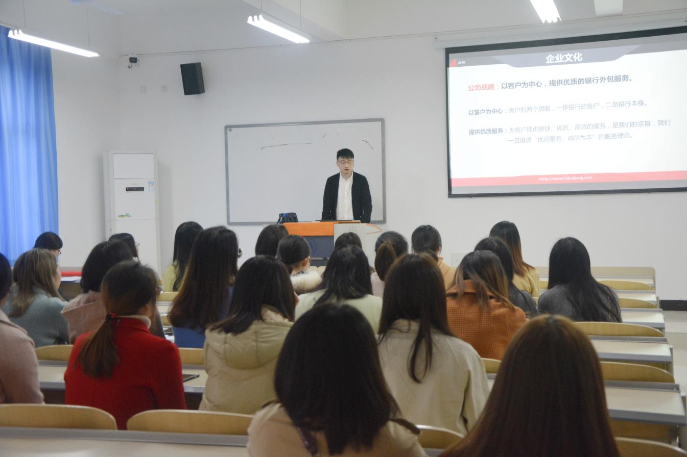 大会由夏欣老师主持,和学院学生会志愿者辅助。此次招聘会,采取的是“宣讲会+现场面试”相结合的模式,长沙惠邦网络科技有限公司、重庆赛思博资产管理有限公司、重庆联美科技有限公司、重庆宜可家房产经纪有限公司共4家招聘单位,提供岗位110个。本次招聘会的流程为:各单位对公司的业务、企业的文化、经营的理念、合作的案例以及招聘岗位等各种信息进行宣讲,然后针对学生提出的问题进行一一解答,对公司进一步的了解,最后根据学生就业意向、递交简历,分岗位组织面试,以便同学们找到心仪合适的工作岗位。