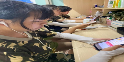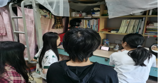 图1:2021级工程造价专业学生在寝室集中观看