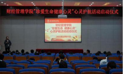 (一)举办财经管理学院“珍爱生命、健康心灵”心灵护航启动仪式,拉开心理健康宣传活动月序幕。10月11日,在财经管理学院学团办副主任徐基忠的主持下,在二级心理工作站站长胥柳的宣讲中,“珍爱生命 健康心理”心灵护航计划启动仪式在学术报告厅成功举行,共计二百余名师生参加了此次活动,启动仪式的顺利开启,预示着心理健康宣传活动月的序幕正式拉开。