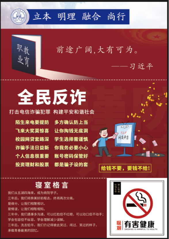 学生寝室是学生在校生活学习的最为重要的场所之一,良好的寝室环境需要全体同学一起来创造、维护,财经管理学院高度重视寝室安全和寝室文明建设,通过寝室文化节、寝室公开栏、自律委员会等多种方式,促使学生们积极参与学院文明护航各项行动,用实际行动参与文明共建,建成了太空、海洋、环保等多种主题的特色寝室,全覆盖制定了寝室反诈、禁烟宣传公开栏,同时,学院班子不定期深入寝室进行走访慰问,全体辅导员按要求深入寝室关心关怀学生、宣传各类政策,全体学生安全意识、反诈意识不断增强,安全防线不断筑牢。