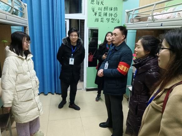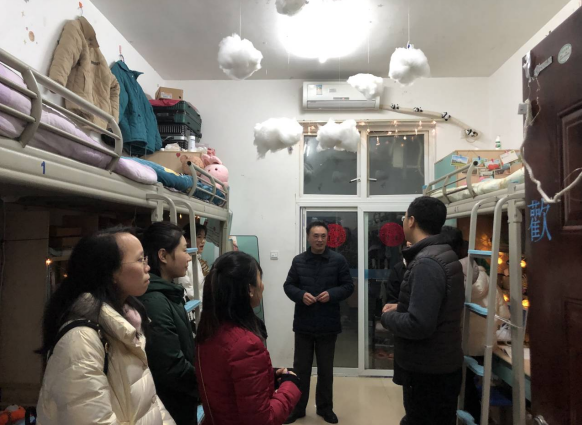 12月24日、25日、31日晚,财经管理学院党政班子带领全体专兼职辅导员深入寝室,开展寝室安全检查并慰问困难学生,鼓励学生珍惜韶华,树立远大目标,保持自强不息的奋斗精神,以优异的成绩回报党和国家的关怀和帮助。