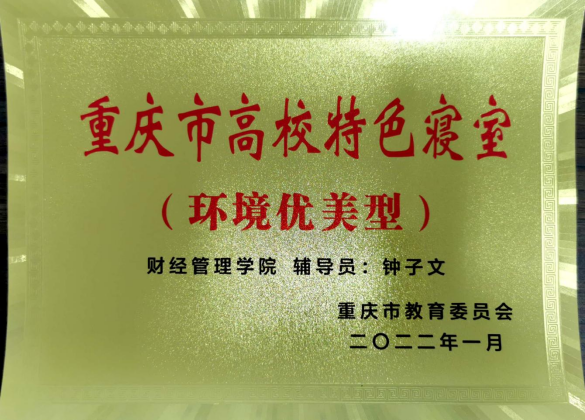 我院钟子文老师积极组织及指导2020级互联网金融2班学生参加重庆市2021年普通高校文明公寓和文明寝室评选活动,两间寝室荣获特色寝室称号。D2135寝室荣获“重庆市高校特色寝室(环境优美型)”荣誉称号,D2134寝室荣获“重庆市高校特色寝室(知行合一型)荣誉称号”。