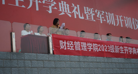 9月19日,财经管理学院2023级新生开学典礼暨入学教育大会在运动场举行,学院党政领导、各办公室负责人、教师代表、军训教官及全体2023级新生参加。大会由副书记阳春艳主持。