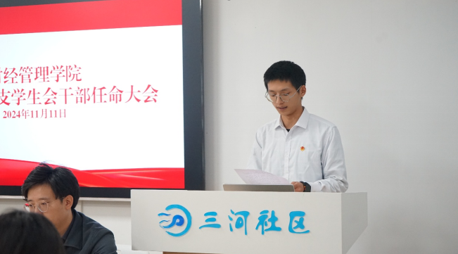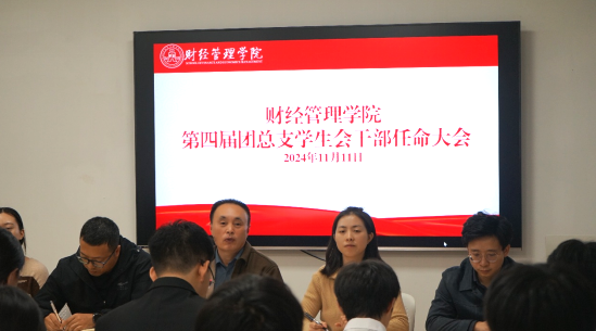 11月11日,财经管理学院在三河社区召开第四届团总支学生会干部任命大会,学院领导、辅导员、第四届团总支学生会新任学生干部等30余人参加。