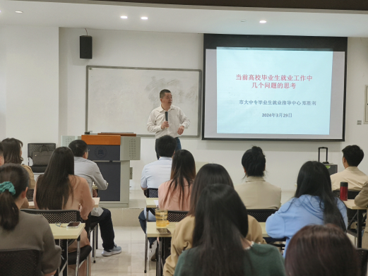 为加强我校就业队伍培训,提升我校辅导员及就业导师团就业指导工作能力,了解就业市场最新发展变化,2024年3月29日上午,学校邀请重庆市大中专就业指导服务中心综合部部长郑胜利到校开展就业工作指导培训讲座,学校辅导员及就业导师团全体成员参加学习。