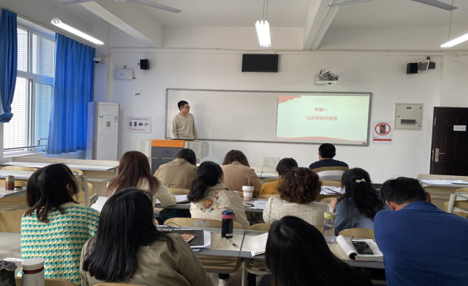 李潇宇老师讲解的第一个专题《习近平经济思想》围绕着新发展理念、新发展格局、世界经济的特征、现代化经济体等方面内容展开,并强调授课过程中,要结合2022年两会中的国家经济社会发展政策取向与促进乡村全面振兴的内容向学生传达国家近几年经济发展的重点工作和习近平经济思想的主要内容。