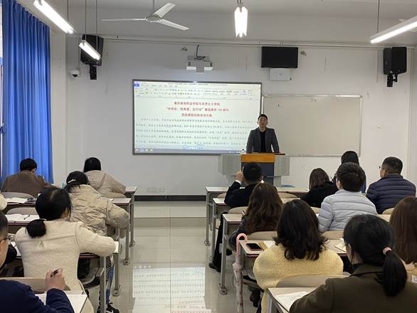 【图/文 顾志飞】3月10日下午,为深入学习贯彻习近平总书记关于思政课系列重要讲话精神和党中央重大决策部署,按照市委和学校党委的要求,我院在1404教室开展全体专兼职教室教职工大会和近期工作动员部署会。学院党总支书记、院长邓龙建主持会议并做动员部署讲话,全体专兼职教师45人参加了会议。