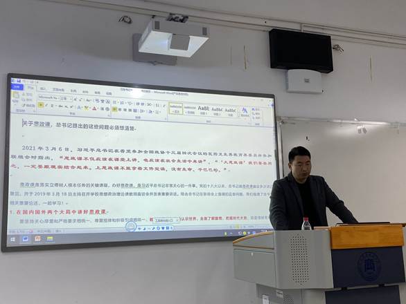 首先,邓龙建带领大家从在国内外两个大局中讲好思政课、讲思政课不能简单照本宣科、在解答现实问题中讲好思政课、运用丰富的教学资源讲好思政课等方面系统学习了党的十八大以来习近平总书记关于思政课的系列指讲话精神。他强调,全体专兼职思政课教师一定要善于学习、不断学习,学懂弄通习总书记关于思政课系列讲话精神,按照习近平总书记提出的“政治要强”“情怀要深”“思维要新”“视野要广”“自律要严”“人格要正”的要求,不断提升自身的思想政治素质和立德树人本领,做合格和优秀的思政教师。