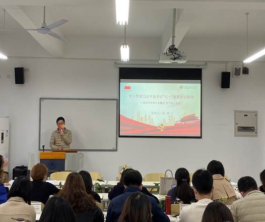 【文/图 向丽霞】为把党史学习教育走深走实,切实发挥好党员的引领表率作用,引导党员学党史、悟思想、办实事、开新局,全面增强党组织的号召力、凝聚力和战斗力。11月3日下午,马克思主义学院党总支委员刘俊在党员活动室2213以《四个伟大成就——学习贯彻习近平总书记“七一”重要讲话精神》为题,给马克思主义学院全体35名教师党员讲授了一堂立意深远、生动翔实的专题党课。
