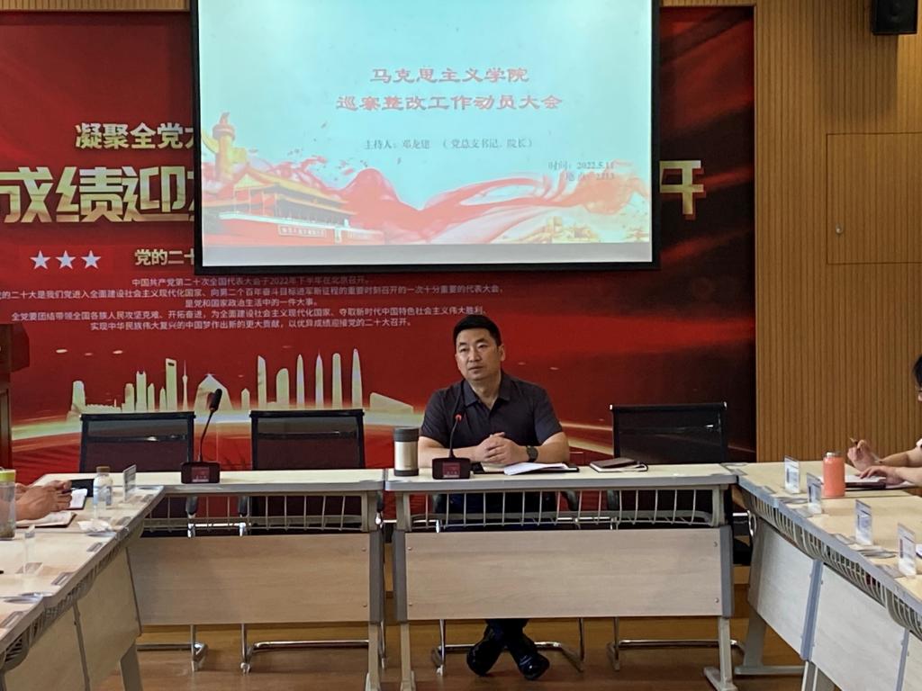 邓龙建首先对学校《关于巡察马克思主义学院党总支的反馈意见》进行了解读。并对每个阶段的具体整改任务和要求进行了详细部署,对整个工作过程提出工作要求。