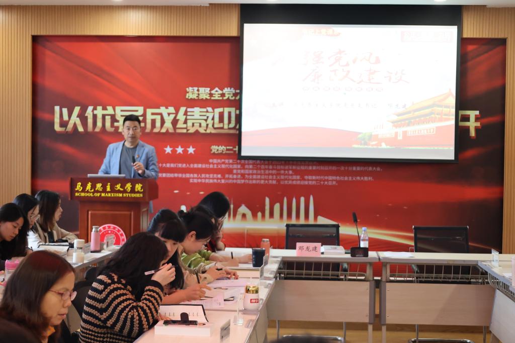 【文/图 钟小飞/顾志飞 】10月5日下午,马克思主义学院在党员活动室2213开展了第三季度党总支书记讲党课活动,全院在校教师党员聆听了本次党课。