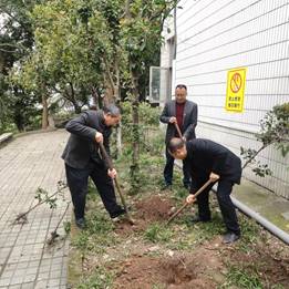 【图/文 南岸校区综合办公室】3月10日下午,机关八支部党员,来到南岸校区空地。齐心协力,挥锄舞铲,将一株株嫰树,送入土中,拂绿浇水,让支部党员在繁忙的教育工作中,借植树节的时光,得以挥洒趣意、交心增谊、畅想生态。