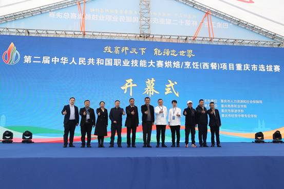 接着3月24日下午,中华人民共和国第二届职业技能大赛烘焙和烹饪(西餐)项目重庆市选拔赛开幕式在南岸校区举行。本次选拔赛由重庆市人力资源和社会保障局主办。来自重庆市职业院校及培训机构的队伍、名选手齐聚一堂,切磋技艺,展示风采。