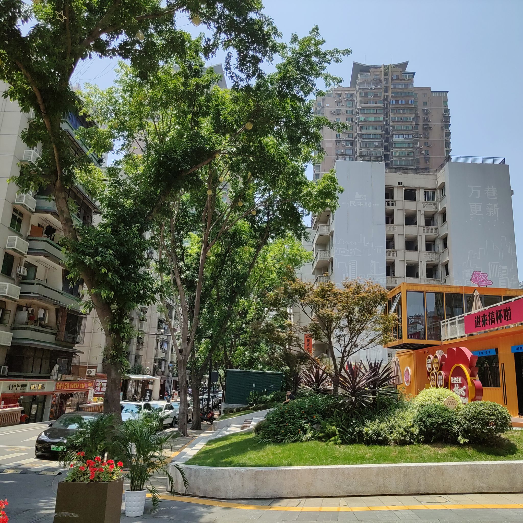 走进民主村,楼房穿上了“新衣”,楼栋间道路宽敞亮堂,街心花园新潮别致,苏式红砖建筑与树影斑驳的黄葛树相伴,老牌美食店、新派潮品店和社区食堂各领风骚,厂街记忆、市井气息与时尚潮流在这里交融生辉。民主村,是重庆建设厂搬迁后留下的家属区,也是九龙坡一代人的集体记忆。民主村的改造在充分传承原有厂区职工楼舍街巷历史文化元素的基础上,也为老街巷注入了新时代新征程新重庆的现代都市新格调,既眷顾了老居民的情感记忆,又充分触动新潮人的时尚猎奇,处处可见用心、用情的巧思。