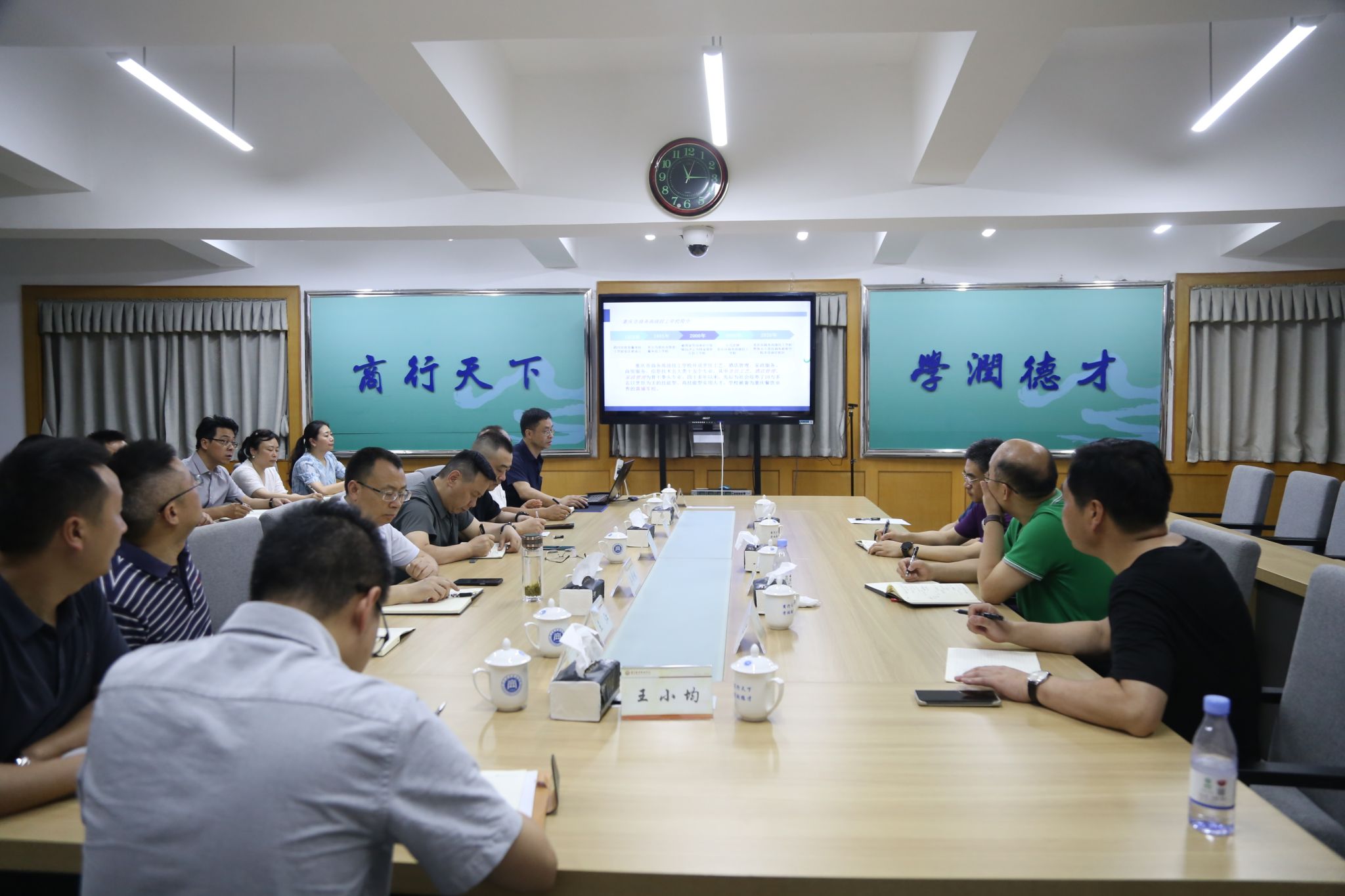 随后,在会议室召开调研座谈会。南岸校区综合办主任杜陈猛从南岸校区基本情况、近年工作亮点、当前主要问题、改造后校园风貌四个方面对南岸校区的过去及现在进行汇报。烹饪与继续教育学院党总支书记李伟、继续教育学院和烹饪学院院长蔡顺林针对两个学院目前的情况和问题进行了补充汇报。