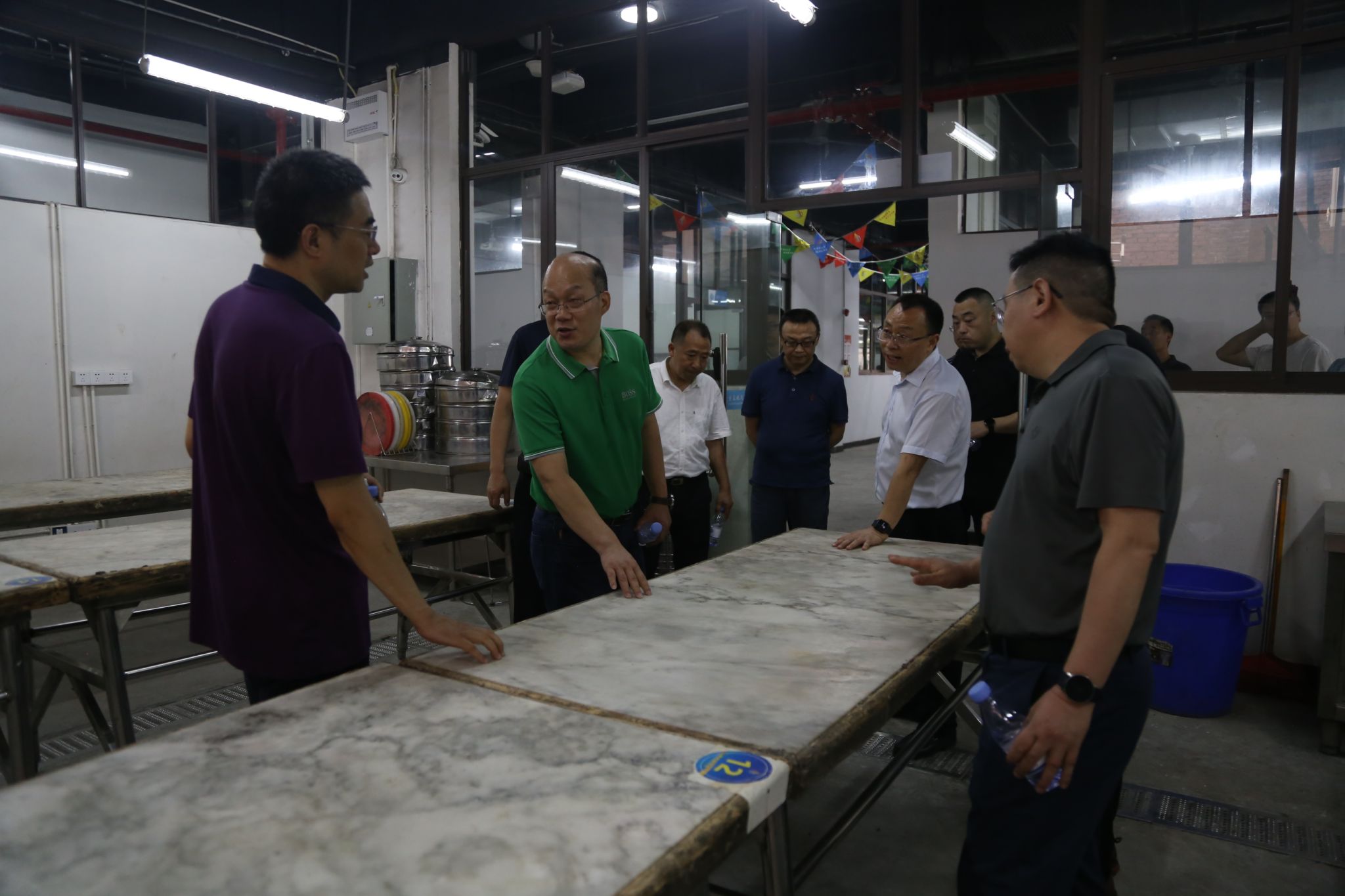 【图/文 南岸校区综合办公室】6月14日,党委书记江涛、党委副书记、校长陈忠飞、副校长丁谦、副校长管军带领相关部门负责人到南岸校区进行调研,南岸校区综合办、烹饪学院、继续教育学院负责人陪同实地查看。