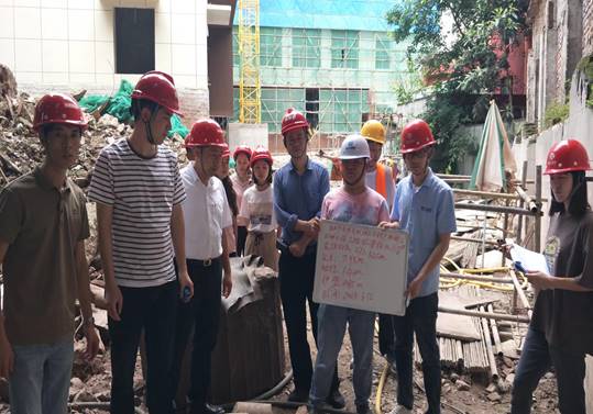 在施工现场,产教融合大楼项目办施工管理组组长王文伦介绍了工程进度和目前人工挖孔桩施工过程、设计要点。参验人员详细了解该工程设计用途、挡墙工程施工、消防道路计划完工时间等相关事宜,要求参建单位做好现场安全管理和质量管理等工作,同时强调在人工挖孔桩施工过程中做好三个方面的工作:一是要加强施工现场安全管理,严格按照危大工程安全专项施工方案专家论证审查表进行实施,确保现场施工安全、质量;二是施工方密切关注雷雨季节预警信息,提前开展隐患排查,做好防风、防雷、防内涝等应急准备,做好现场防讯管理;三是在确保安全、质量的前提下控制施工进度节点,严格按照本项目施工总进度计划进行实施,保证按时竣工。