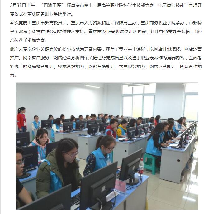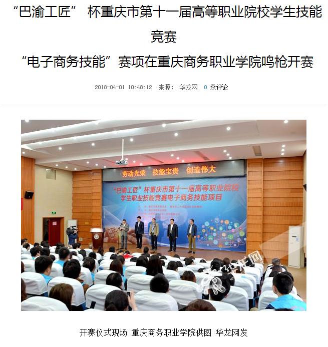 沙坪坝手机台:巴渝工匠杯重庆市第十一届高等职业院校学生技能竞赛电子商务技能赛项在我区举行。http://sj.shapingba.cbg.cn/2018/04/03/28228049.shtml。