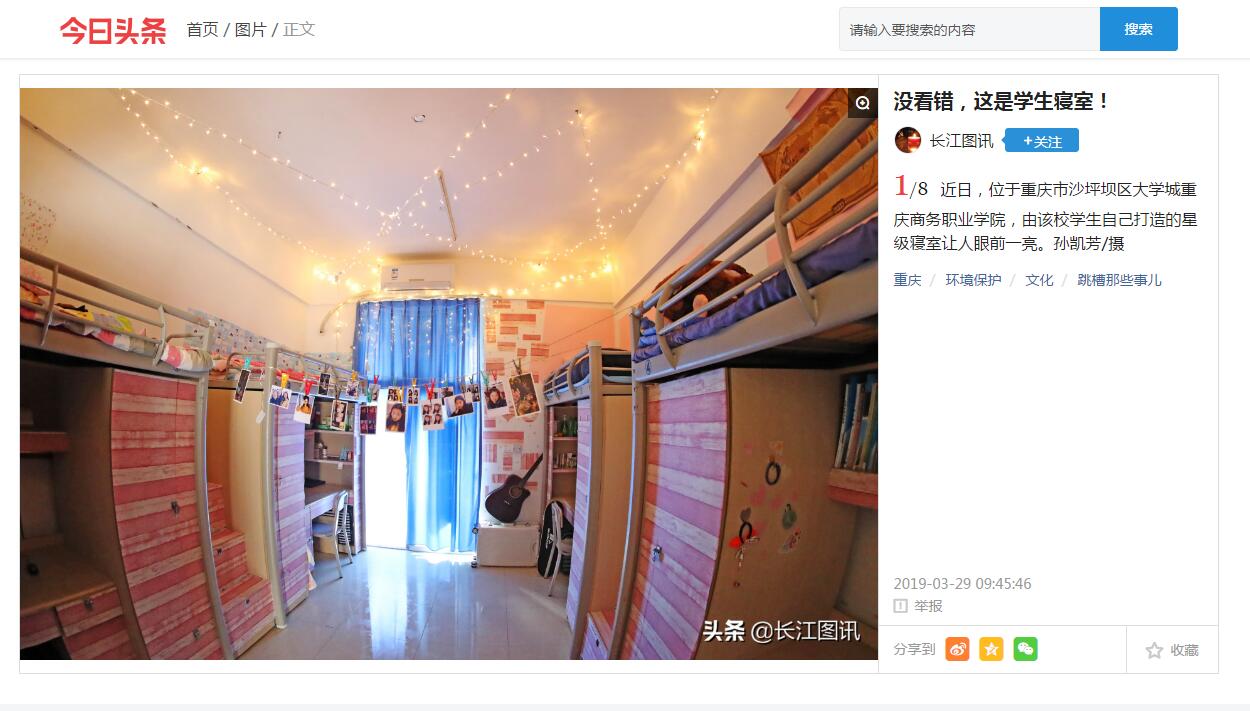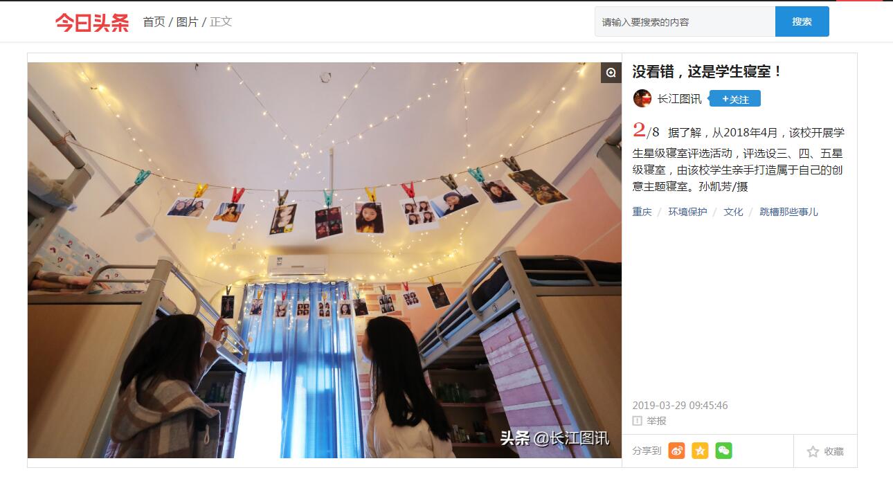 学校学生自己打造的星级寝室让人眼前一亮,今日头条等媒体纷纷报道。