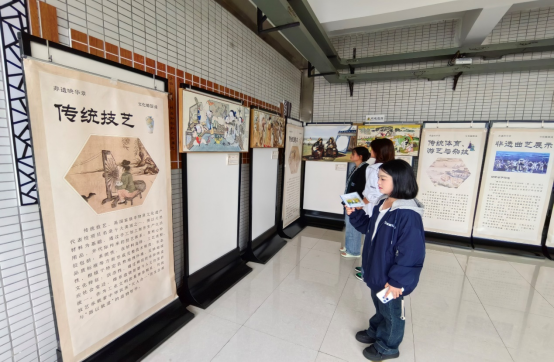 活动现场,守赤心,传文脉——爱国教育“牵手”传统文化进校园画展,以中国古代君子四艺“琴棋书画”为依托,青年学子沉浸式体验,运用艺术作品、单元海报、文房四宝、棋具等内容,展现中华传统文化的魅力,弘扬中华传统文化精神。