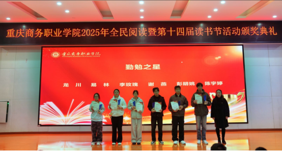 2025年12月10日下午,重庆商务职业学院“阅读赋能 启智润心 ”全民阅读暨第十四届读书节活动表彰大会在学术报告厅顺利召开。学校党委委员、副校长贾小波、各学院分管学工工作副书记、各学院学团办主任以及获奖师生代表和学生代表参加,大会由图书馆馆长廖彩霞主持。