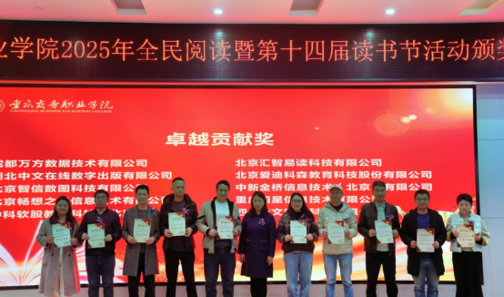 廖彩霞馆长首先致辞,对积极参与读书节活动的师生表示肯定,并特别感谢了知网、超星、维普等在内的16家图书数字资源合作单位对学校阅读推广工作的大力支持。随后,大会依次颁发了“阅读之星”、“文明传承接力赛”获奖者及阅读推广先进个人、优秀组织奖、贡献奖等13个奖项,表彰在阅读、成长、奉献三个方面表现突出的师生与集体。党委委员、副校长贾小波等领导及图书数字资源平台代表为获奖者颁奖。