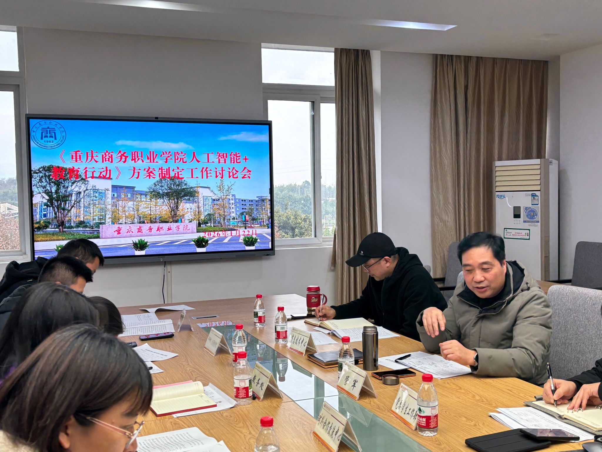 1月22日下午,我校在行政楼第五会议室召开《重庆商务职业学院推动“人工智能+教育”行动方案》制定讨论会,由管军副校长主持,各相关责任部门负责人参会。
