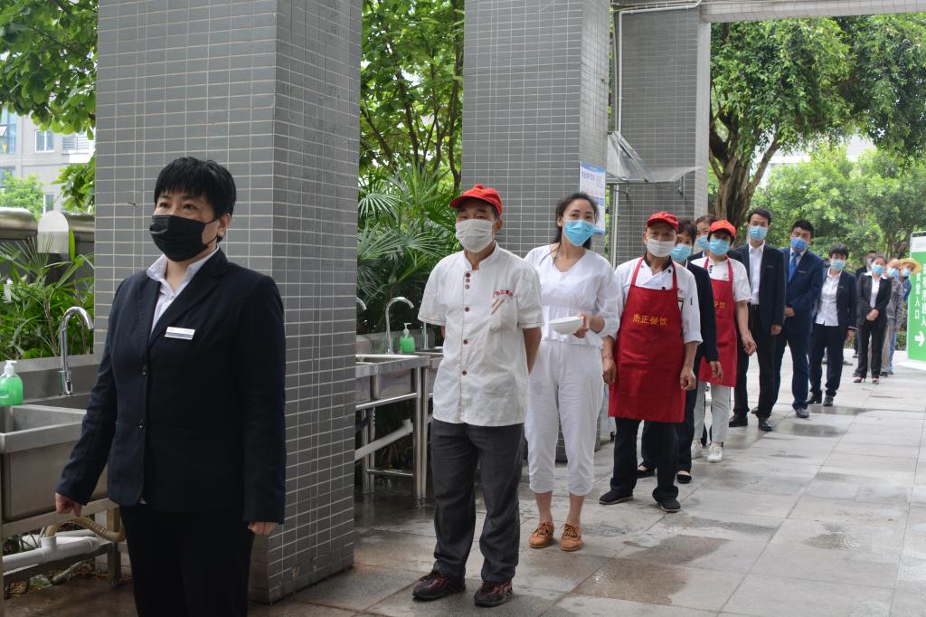 【文/图 校疫情防控工作领导小组办公室】5月13日,在学校疫情防控工作领导小组全面领导下,疫情防控办公室及各专项小组开展疫情防控应急演练。上午9时30分,副院长、校疫情防控工作领导小组办公室主任舒鸿一声令下,应急演练正式开始。物业及膳食服务中心等近一百名人员参加演练,各院系党政负责人、学团办主任、教务办主任、全体辅导员到场观摩学习。本次演练分为安全入校、教室上课、食堂就餐、宿舍生活四个场景。