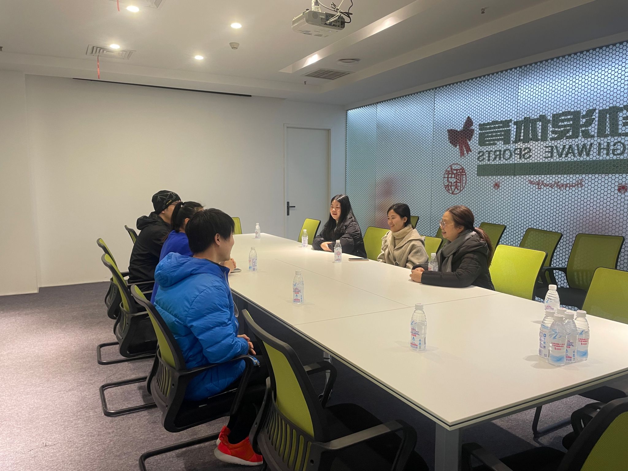 谭老师一行首先来到重庆劲浪体育用品有限公司,在人事经理的陪同下参观了公司的文化墙,了解了公司的业务和招聘用人体系,随后在公司开展座谈。座谈会上,校企双方就电商零售行业人才需求新动向和实习就业等进行了交流,劲浪体育公司内部培训师张从秋参加了座谈。张从秋是学校2020届连锁经营管理专业的校友,他介绍了本人在公司的发展历程和现状,对学弟学妹们提出了职场建议。