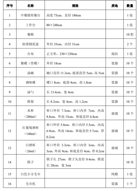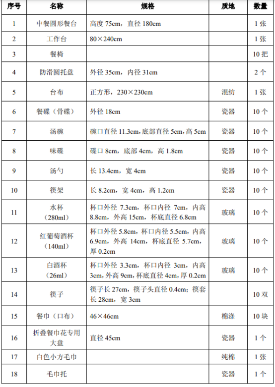 (一)中餐宴会摆台考试器材用具