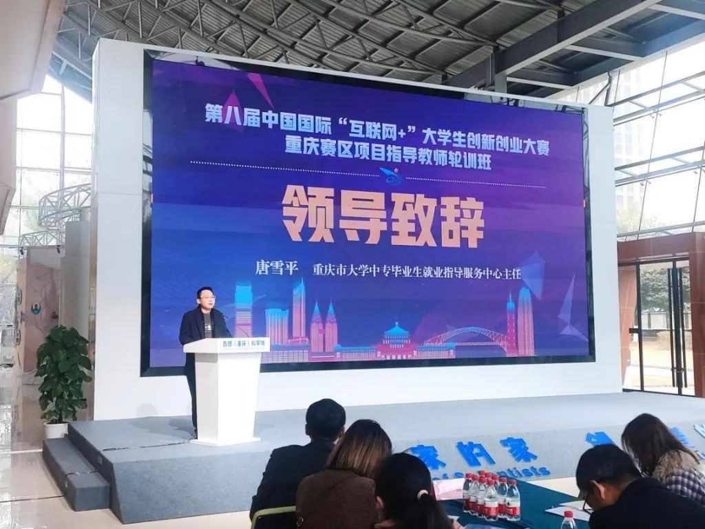 市大中专毕业生就业指导中心主任唐雪平在开班仪式上致辞。他指出,举办指导教师轮训,做好参赛项目辅导,对提升参赛项目质量和取得赛事优异成绩具有重要促进作用,希望参训教师进一步提高认识,珍惜学习交流机会,加强对学生项目的指导实效,真正做到指导项目有高度、上水平、出效果;并通过培训进一步增强对大赛教育本质的认知,学以致用,在日常教育教学中积极推动赛教融合、以赛促教。