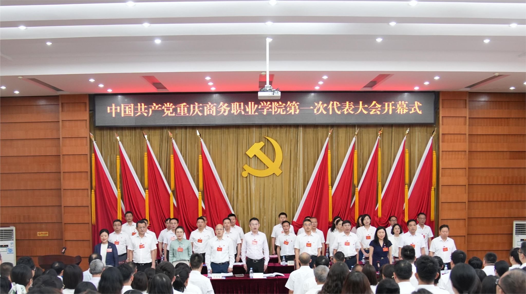 【文/图  党委宣传部】六十载弦歌不辍育英才,新时代踔厉奋发谱新篇。在全面学习贯彻习近平新时代中国特色社会主义思想和党的二十大精神的重要时刻,在学校事业发展步入新阶段、踏上新征程的关键时期,6月27日,中国共产党重庆商务职业学院第一次代表大会隆重召开。对于学校发展来说,这是一次承前启后、继往开来的重要会议,大会的主题是:高举中国特色社会主义伟大旗帜,坚持以习近平新时代中国特色社会主义思想为指导,深入学习贯彻习近平总书记视察重庆重要讲话重要指示精神,坚持和加强党的全面领导,全面贯彻党的教育方针,落实立德树人根本任务,加快推进高质量发展,为全面建设特色鲜明的高水平高职院校而团结奋斗。
