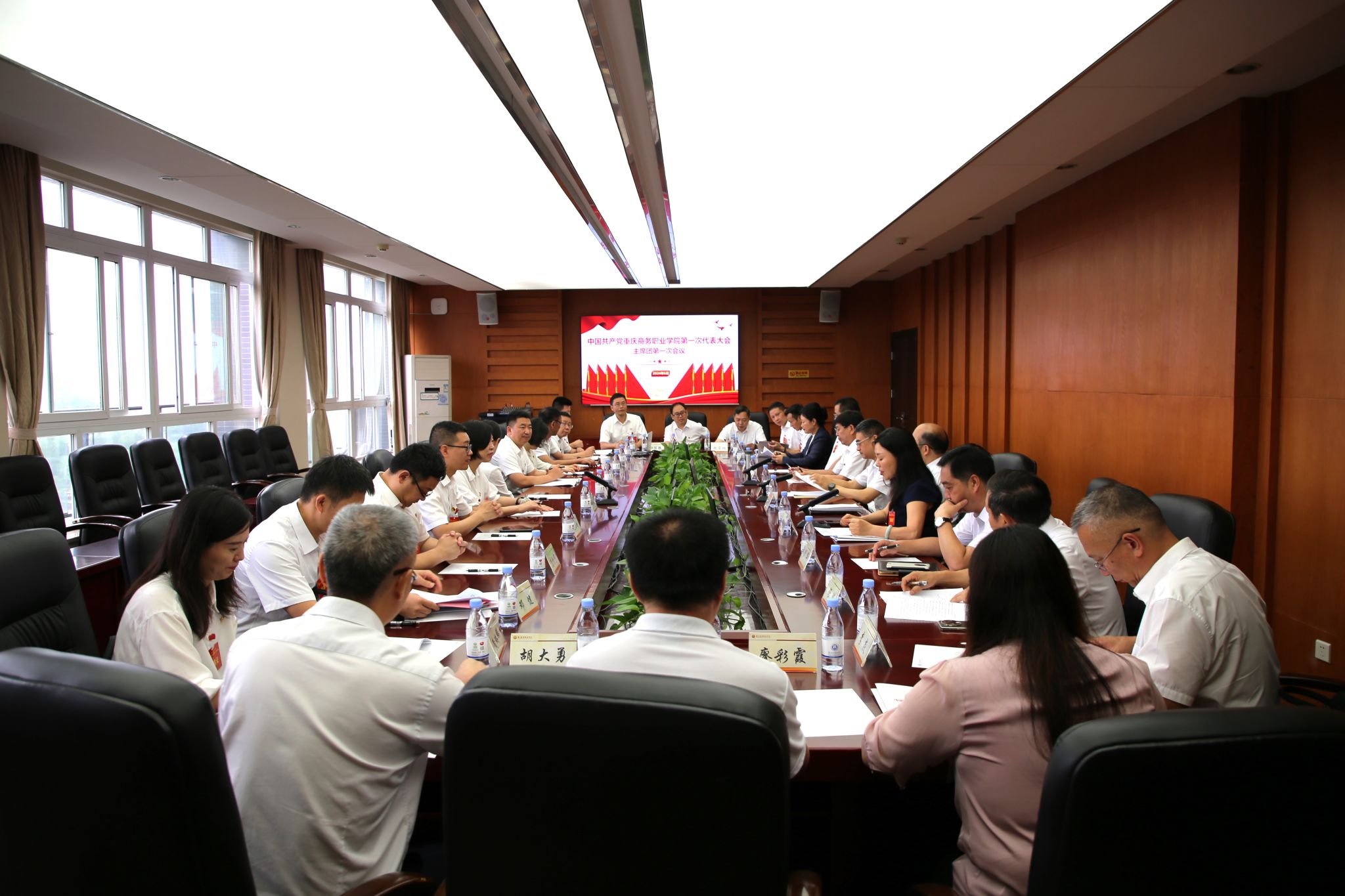 闭幕式后,中国共产党重庆商务职业学院第一届党委召开第一次全体会议,选举产生新一届党委书记、副书记。江涛同志当选为党委书记,陈忠飞、余晓玲同志当选为党委副书记。
