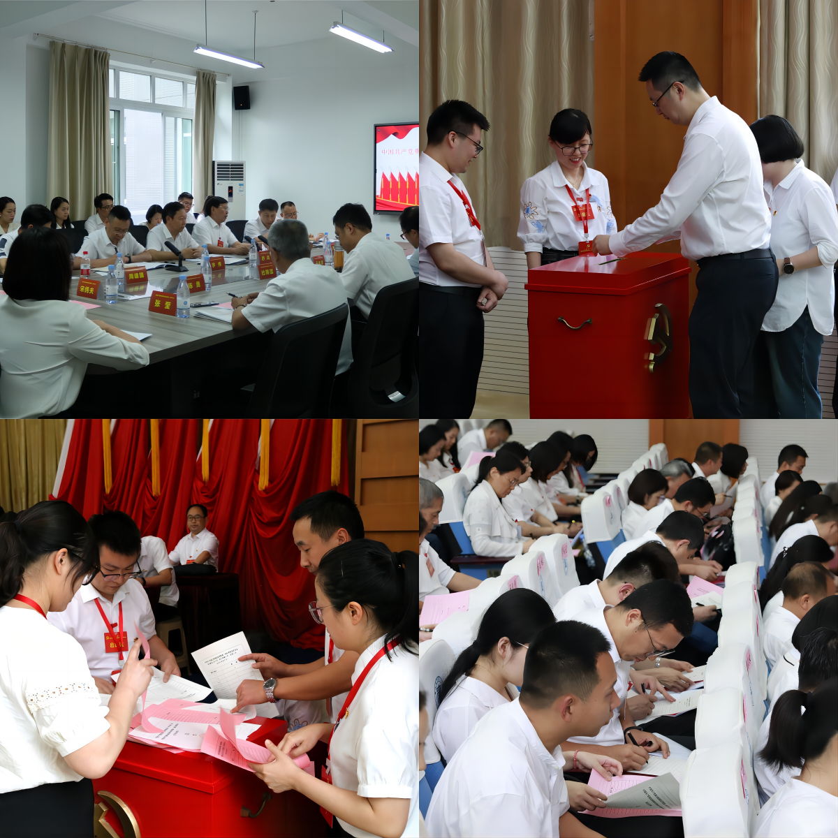 下午13时至15时30分,大会依次顺利开展各代表组分组讨论会、主席团第二次会议、选举会议、主席团第三次会议,审查了党委报告、纪委工作报告、党费收缴使用和管理情况报告,表决通过了大会选举办法,通过了总监票人、监票人名单。到会的129名正式代表以无记名投票方式,选举出中国共产党重庆商务职业学院第一届委员会委员10名,第一届纪律检查委员会委员7名。