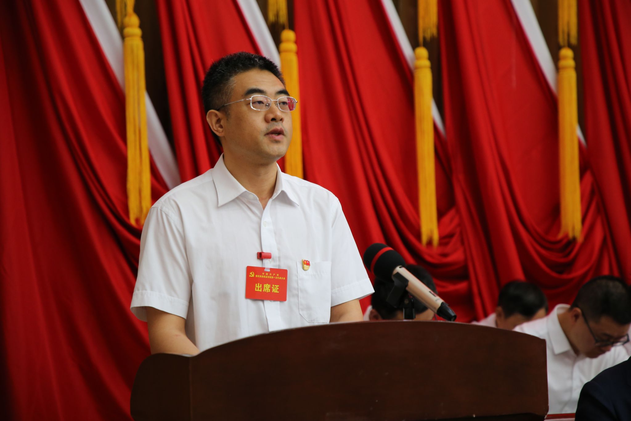 肖音殷同志宣读了《中共重庆市委组织部关于同意召开中国共产党重庆商务职业学院第一次代表大会的批复》。