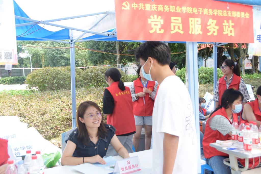 在2021年9月10日至11日2021级新生入学报到之际,电子商务学院党总支在新生接待处设立了“党员服务站”,组织党员开展“志愿迎新生,服务暖人心”主题党日活动。广大党员踊跃报名参加,积极为新生报到做好各项筹备和接待工作。