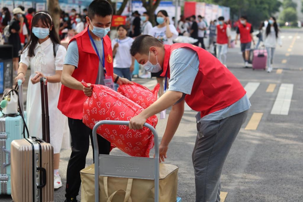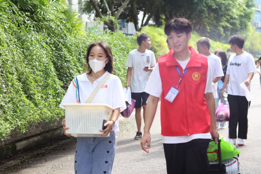 党员志愿者们冲锋在前,为新生指引道路,主动帮助他们搬运行李,让新生们感受到了党员服务的热情。