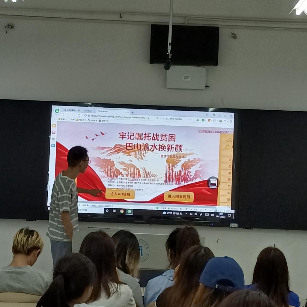 为了让同学们学习脱贫攻坚的故事,加强对脱贫攻坚的全面了解和认知,继续发扬伟大的脱贫攻坚精神,进一步落实《重庆市教育委员会办公室关于转发观看牢记嘱托战贫困巴山渝水换新颜重庆市脱贫攻坚展的补充通知》文件精神,在2021年9月10——9月17日期间,电子商务学院以行政班为单位组织全院学生观看了《牢记嘱托战贫困 巴山渝水换新颜》。