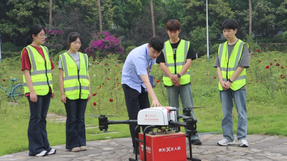 随后,在老师带领下同学们移步至户外场地开展实飞训练,大家根据课堂上学习到的无人机操控技巧匀速缓慢地控制无人机飞行轨迹。在本次训练中,同学们展示了风向突变、信号干扰等突发状况的实践操作技巧。